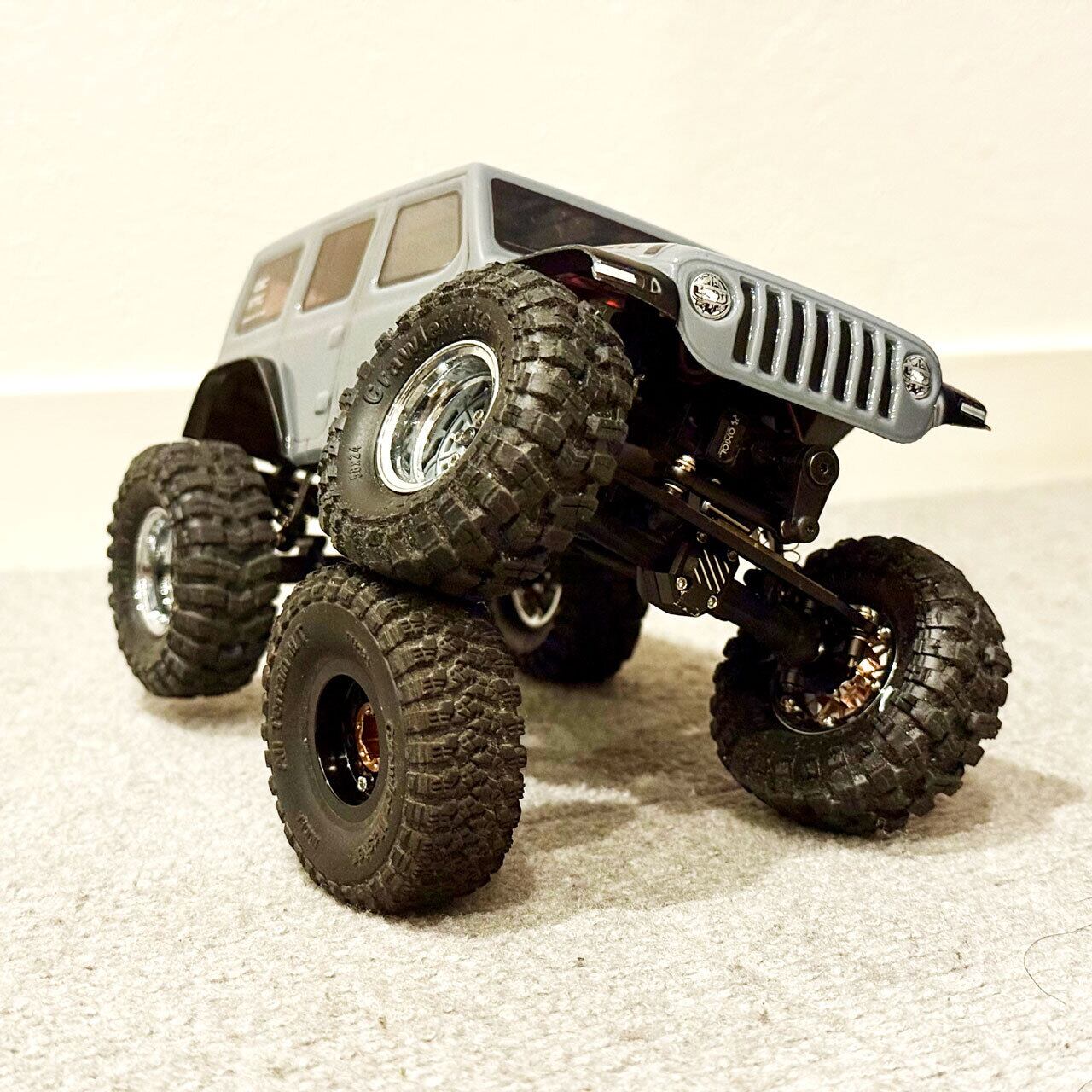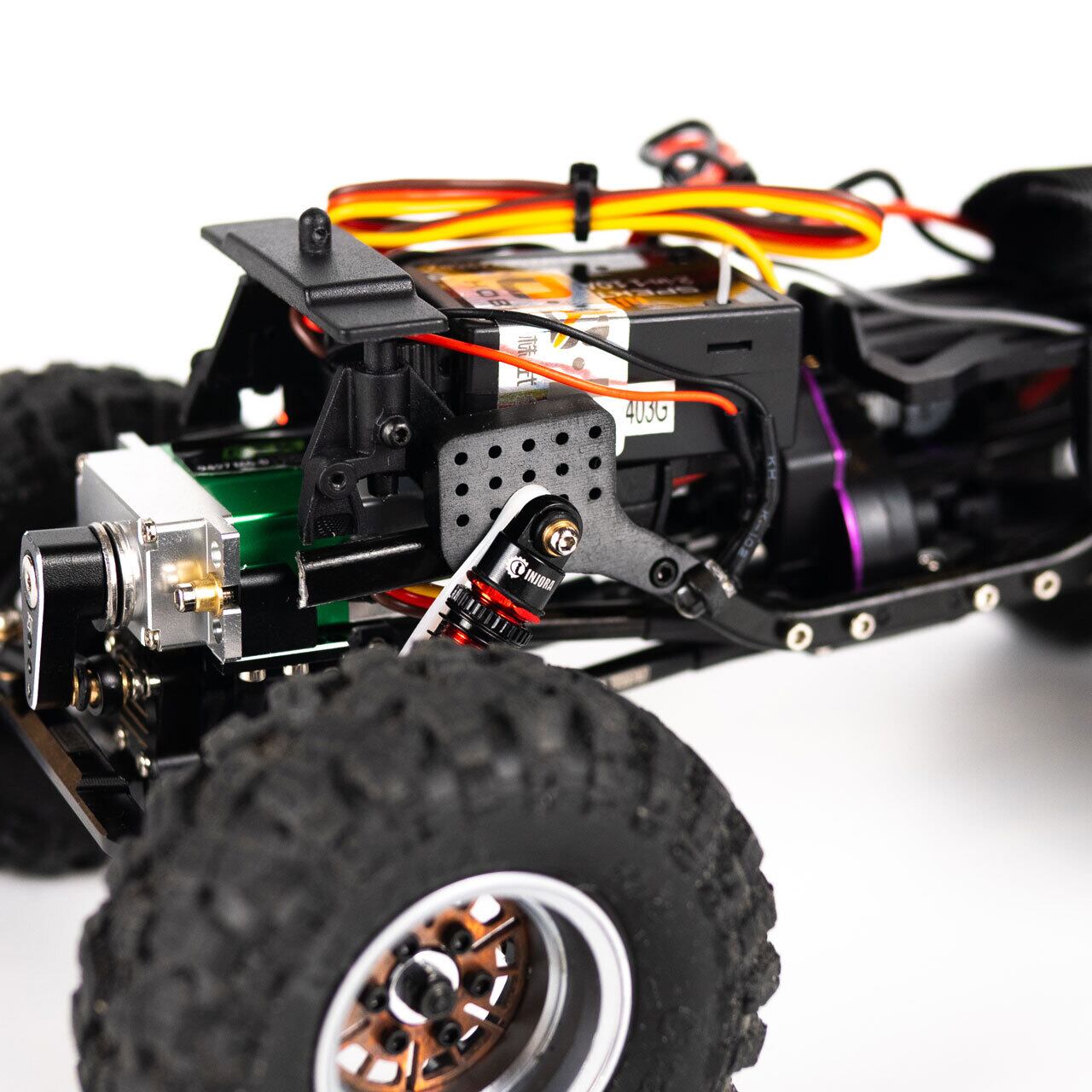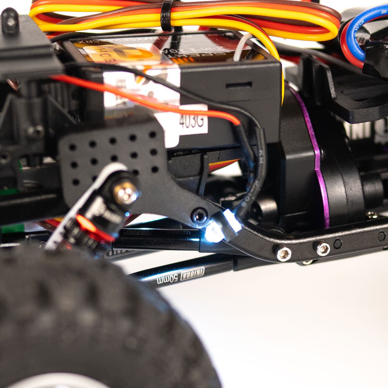 また、フロントのショックタワーにはLEDライト用のブラケットが備わっており、ノーマルバンパーに装着されているLEDをロックライトとして再利用することができます。