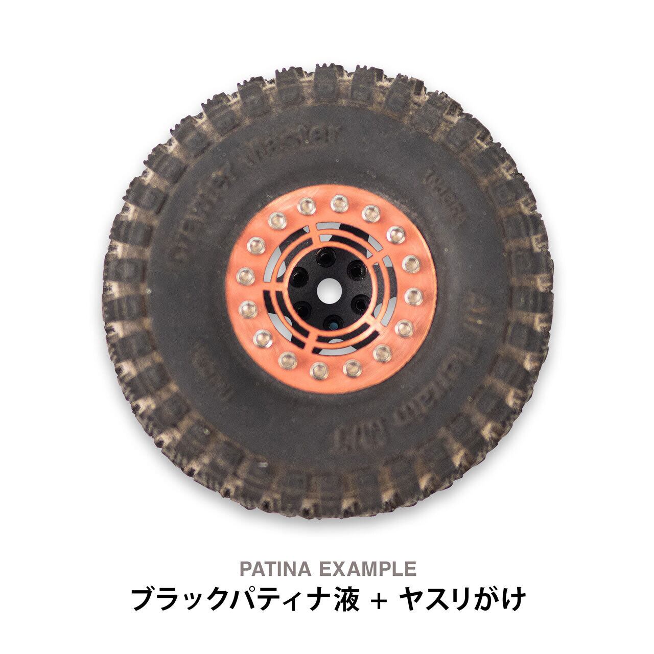 銅板を切り出して作られたホイールフェイスは、マテリアルの特性を活かした酸化、ケミカル染色(パティナ液)、自然風化によって「世界でひとつだけのホイール」に仕上げることができます。