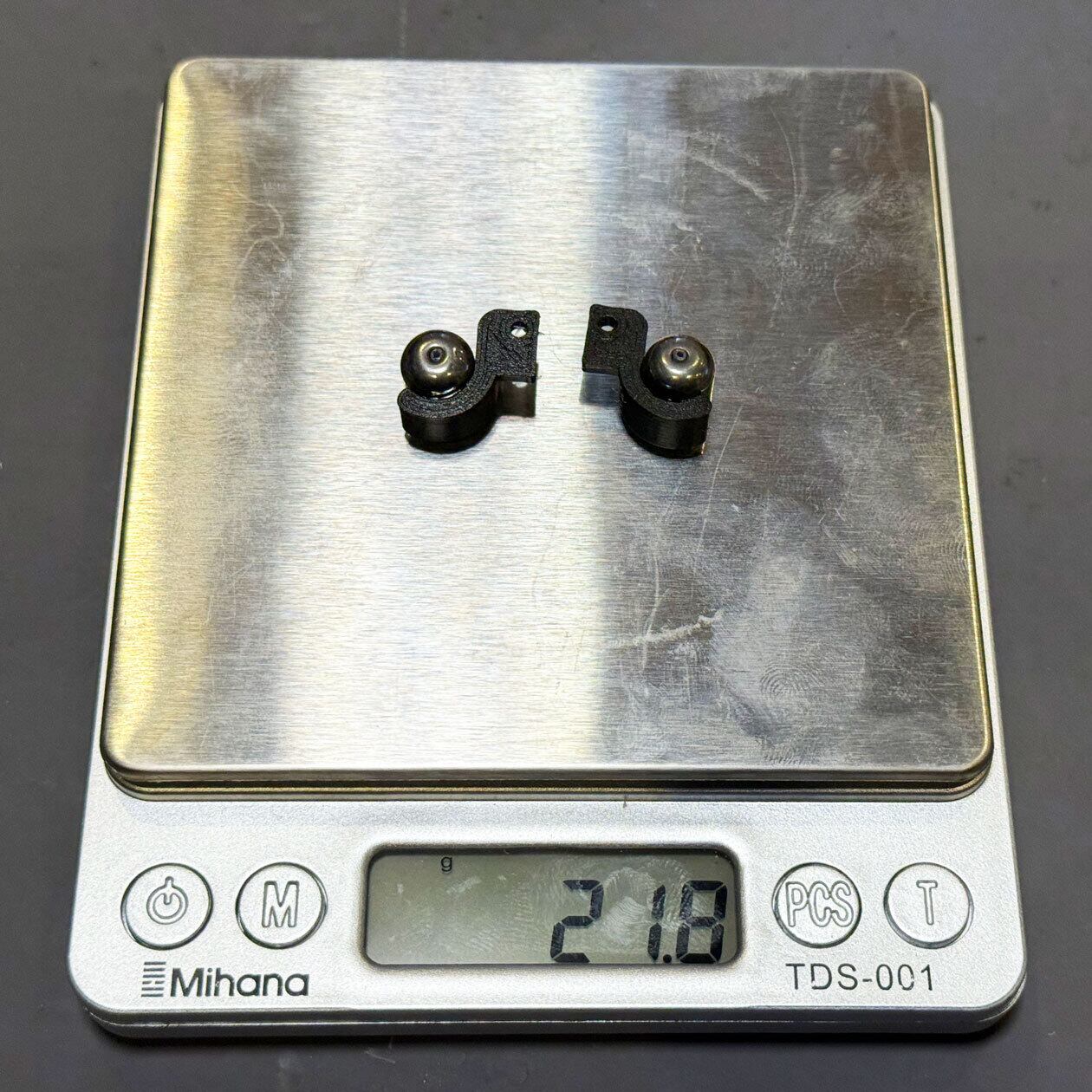 真鍮の 2 倍の比重があるタングステンウエイトをサーボより下の位置に設置するためのウエイトハンガーです。